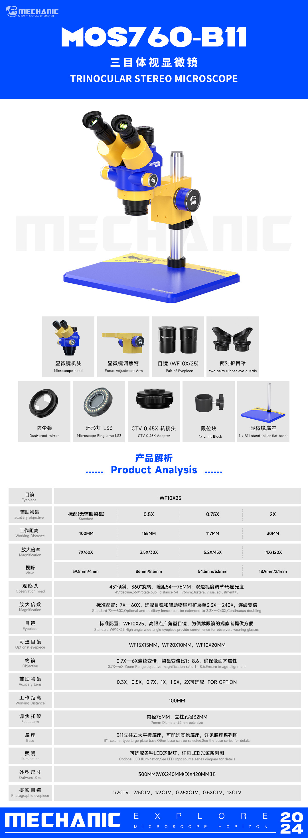 Magnification: Standard configuration 7X-60X