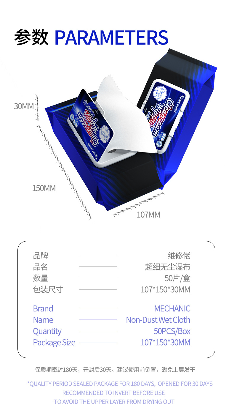 Wet wipes packaging dust-free cloth