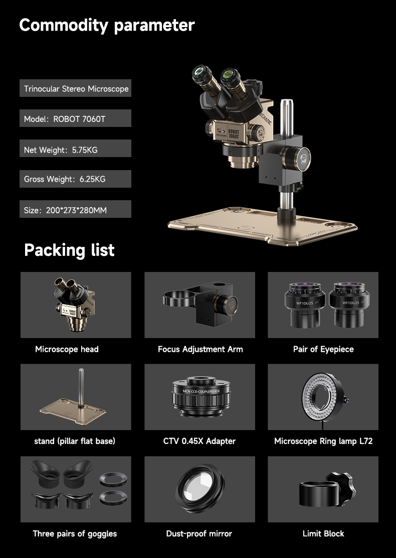 ROBOT7060T-TG Trinocular Stereo Microscope