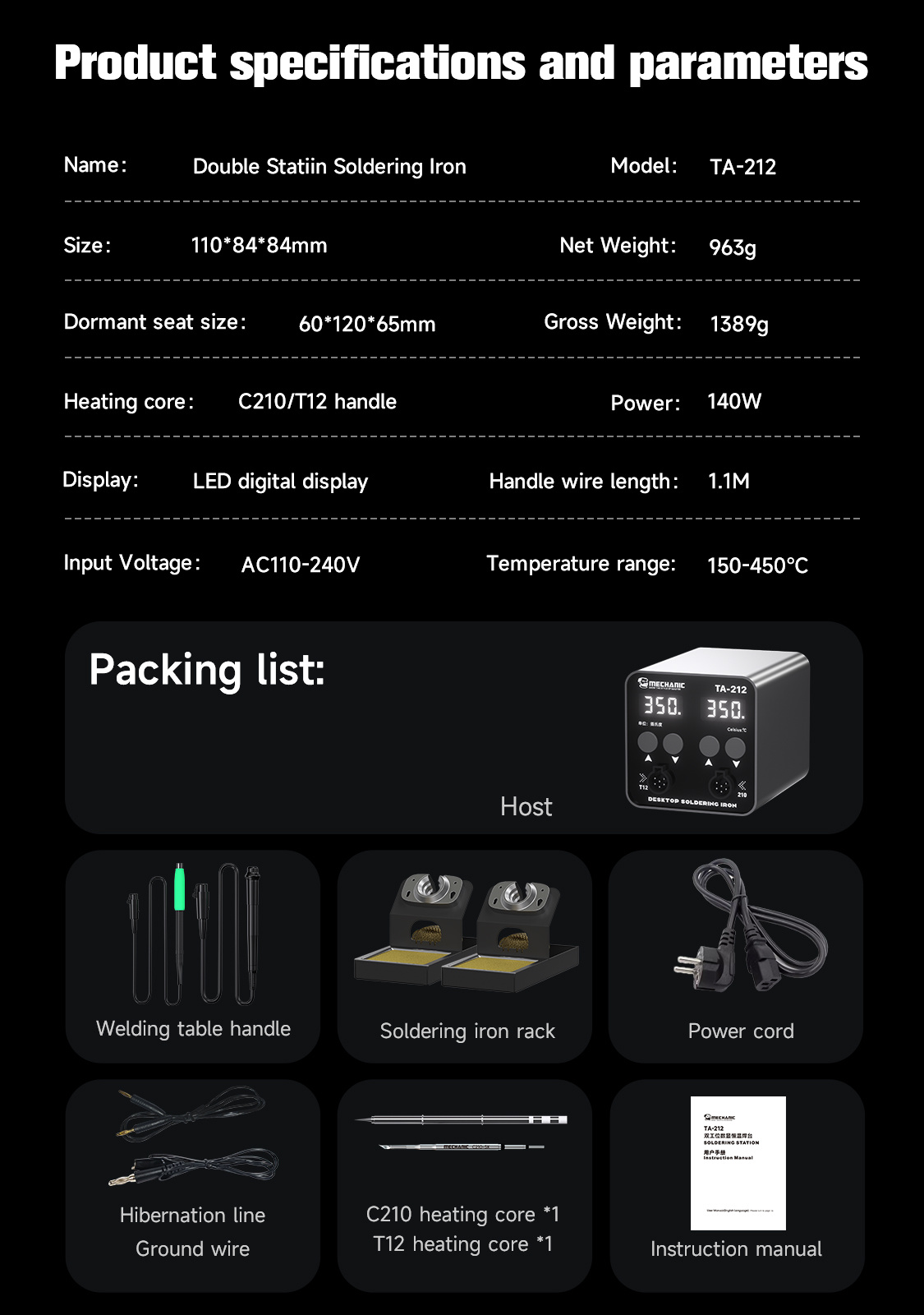 TA-212 Double-station Digital Thermostatic Soldering Station